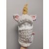 Kukla má tvar jednorožčí hlavy s otvorem pro průzor helmy.